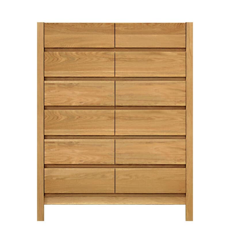 前板の下部に手をかける溝を掘り込んでいるので、シンプルなデザインを損なうことなく、使いやすいタンスに仕上げています。