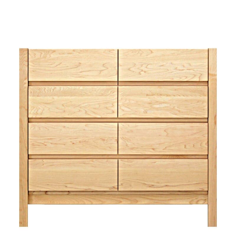 前板の下部に手をかける溝を掘り込んでいるので、シンプルなデザインを損なうことなく、使いやすいタンスに仕上げています。