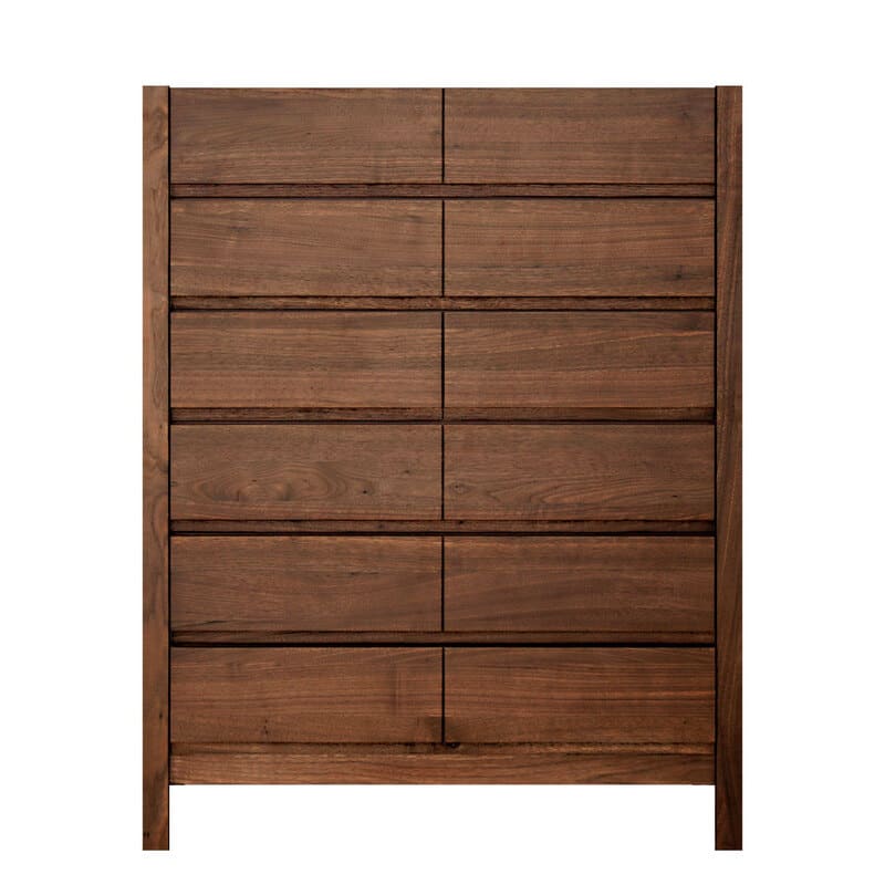 前板の下部に手をかける溝を掘り込んでいるので、シンプルなデザインを損なうことなく、使いやすいタンスに仕上げています。