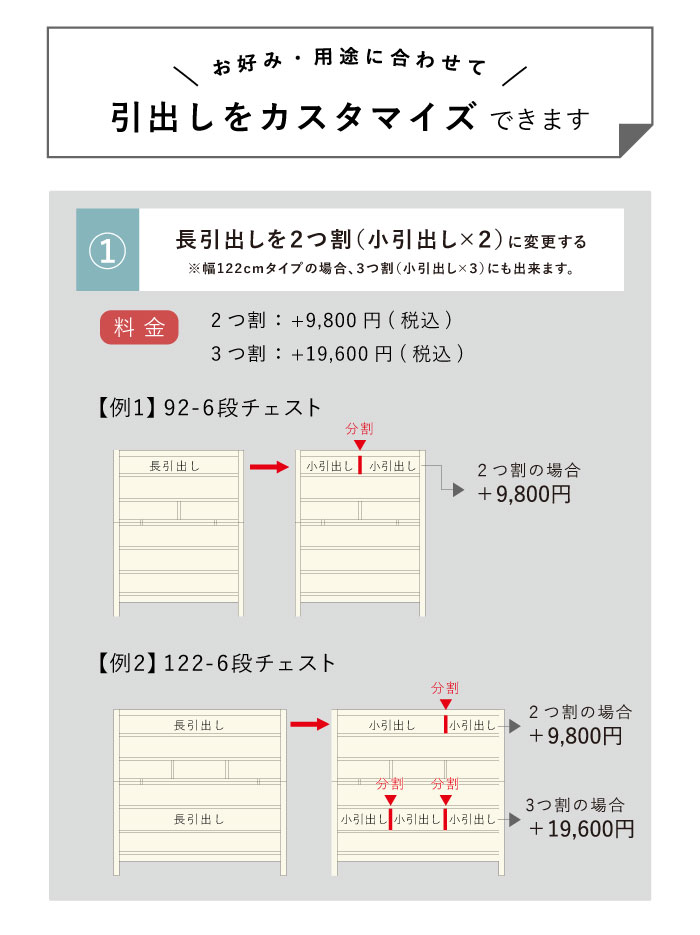 引出しのカスタマイズをご希望の場合はご注文前にお問合せください。
