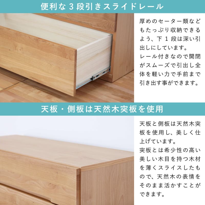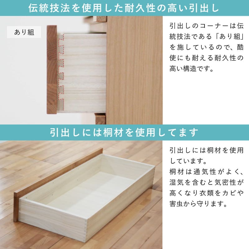 引き出しには桐材を使用しています。桐にはカビや害虫から衣類を守る効果があります。