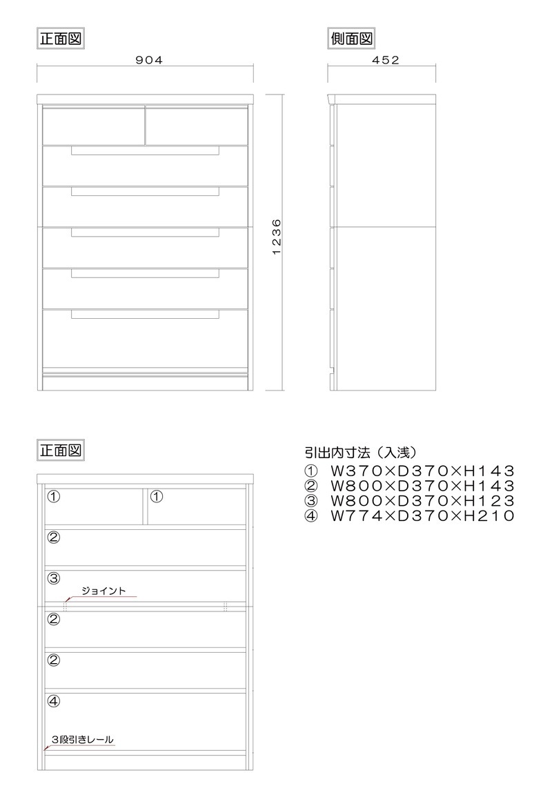 引出し:桐箱組(蟻組)垣板厚19mm/底板5mm