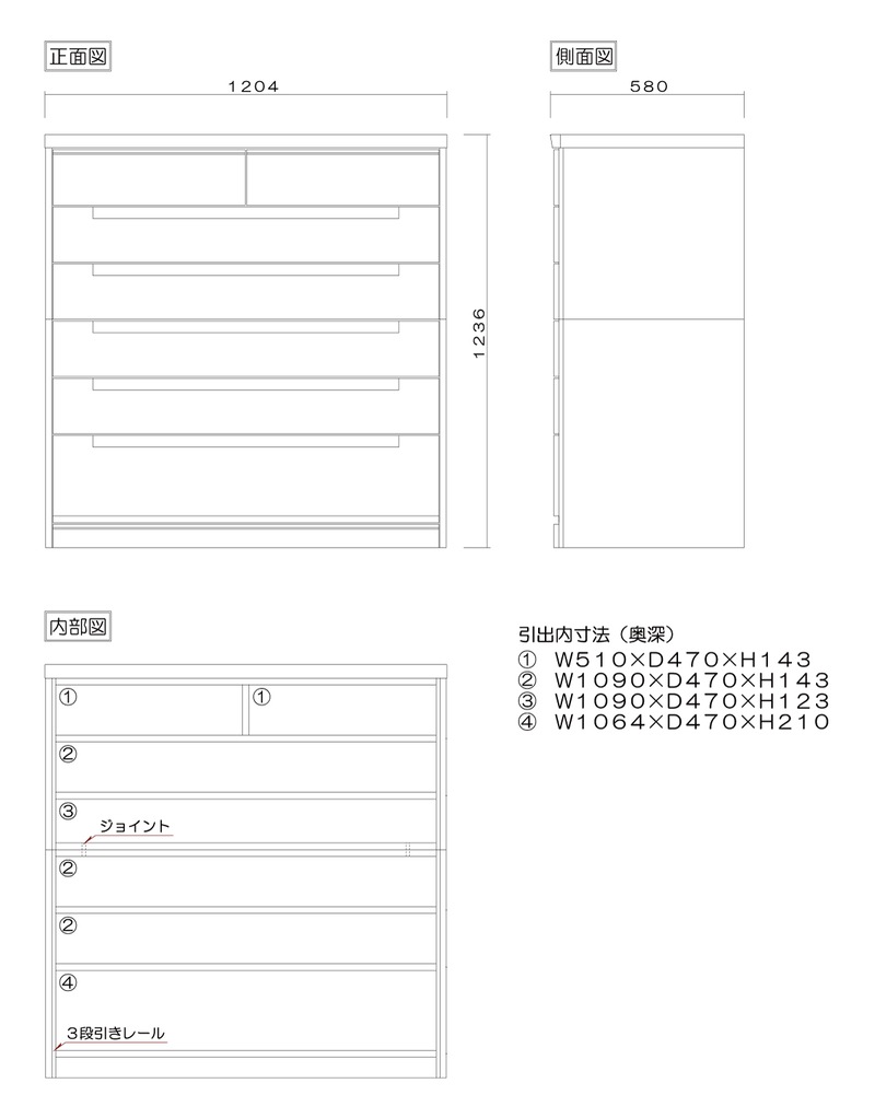 引出し:桐箱組(蟻組)垣板厚24mm/底板5mm