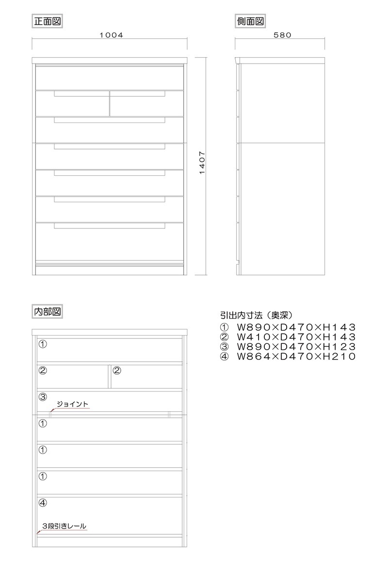 引出し:桐箱組(蟻組)垣板厚24mm/底板5mm