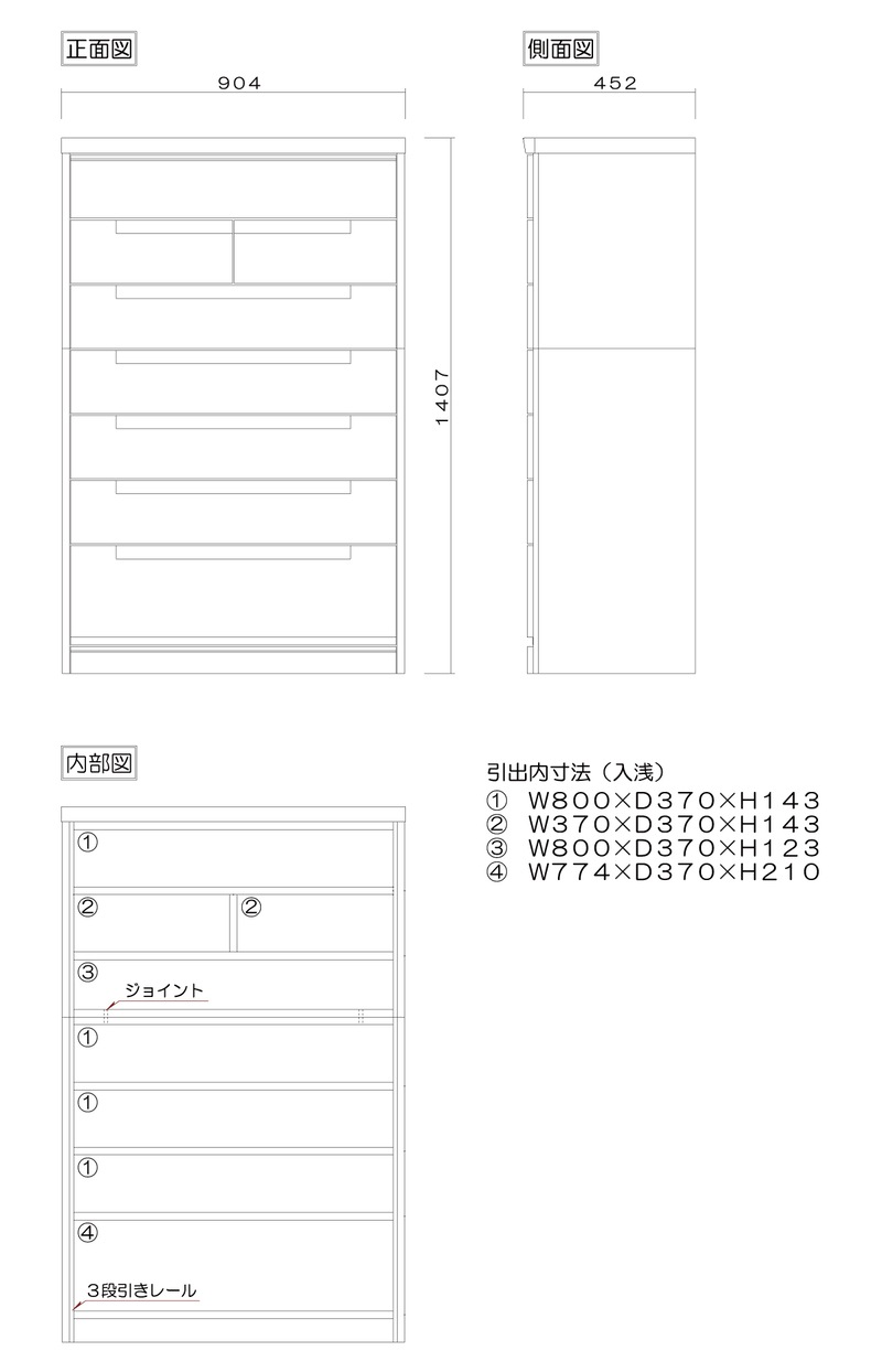 引出し:桐箱組(蟻組)垣板厚19mm/底板5mm