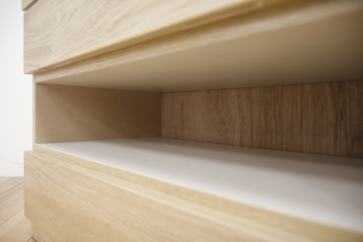 引出しを支える地板が奥まである総地板仕様で制作しています。